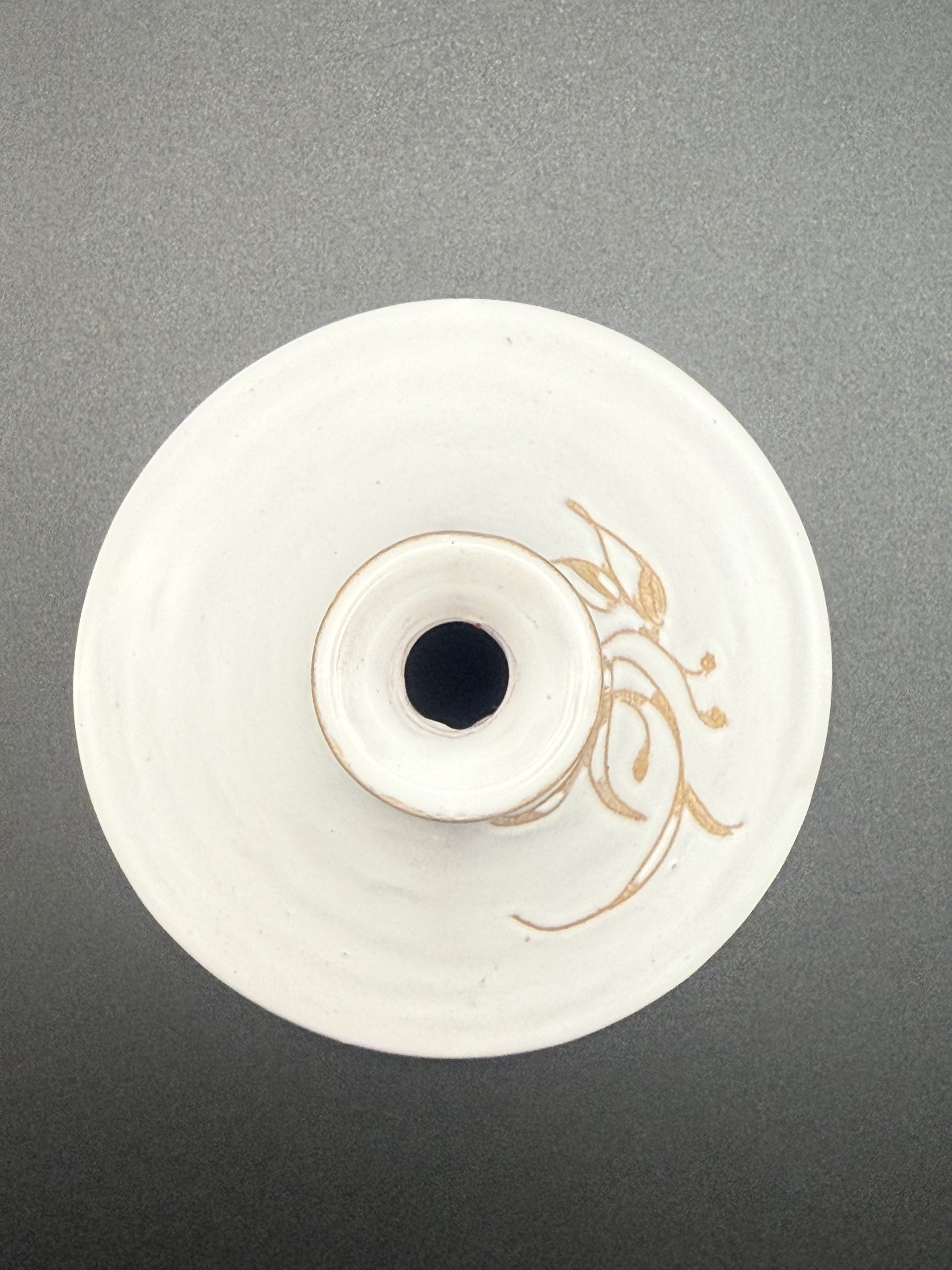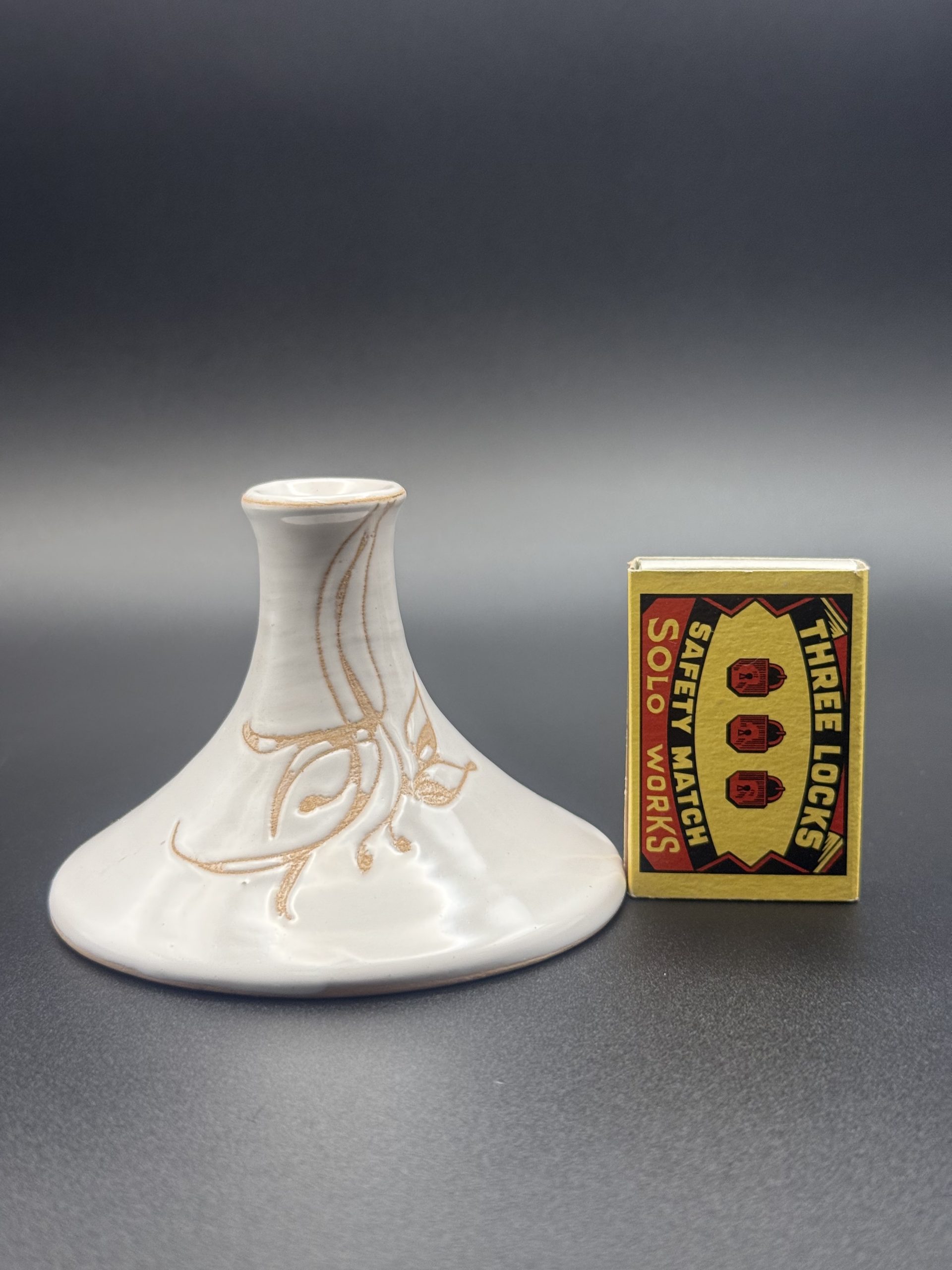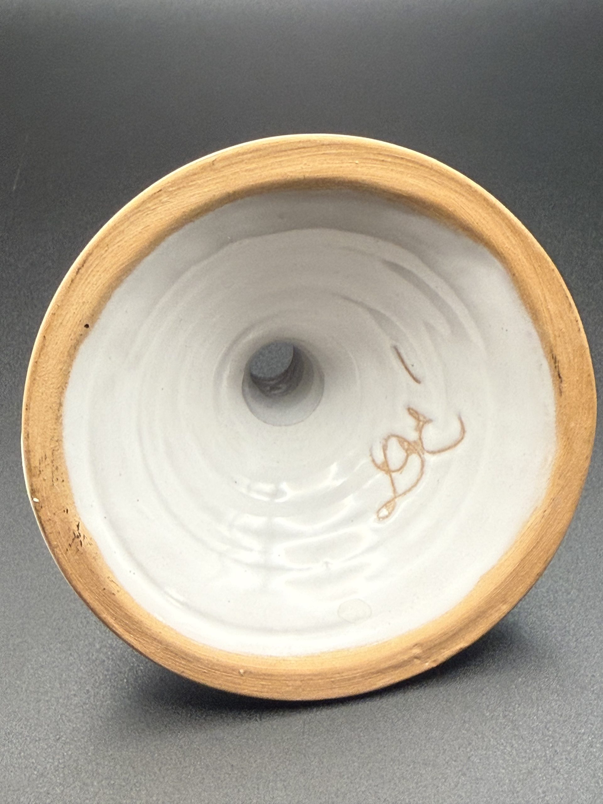 Jelzett kerámia gyertyatartó.