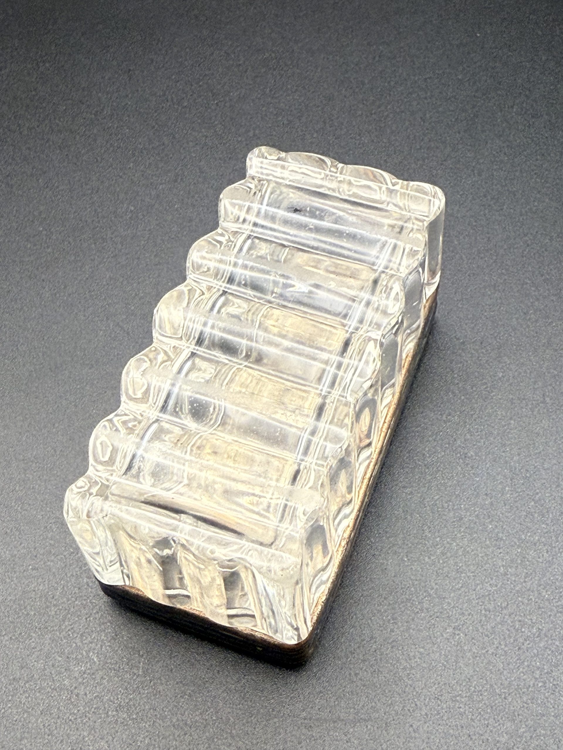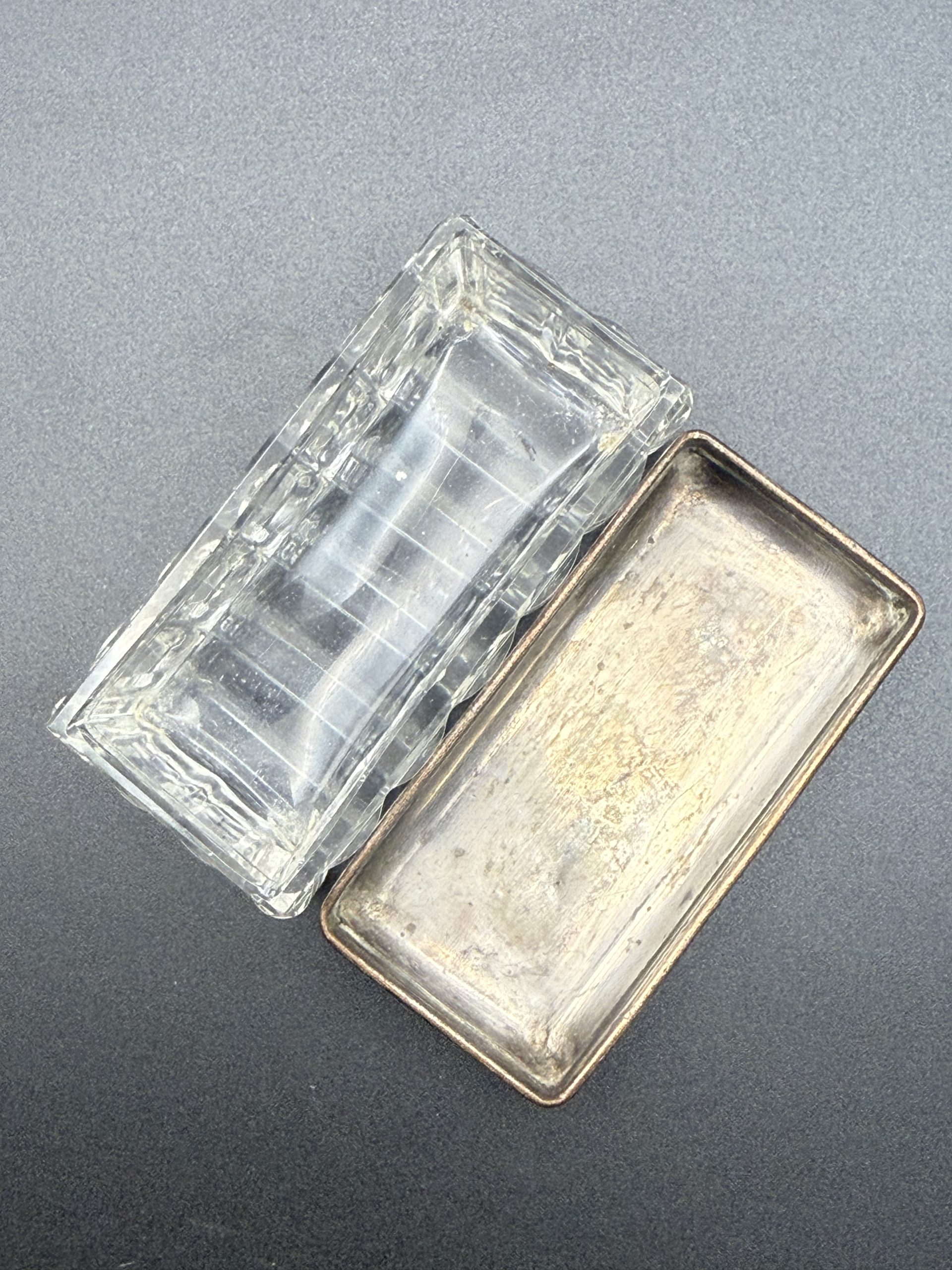 Az üveg alsó rész hibátlan, a tetőn lekopott az ezüstözés.